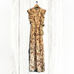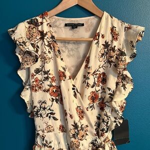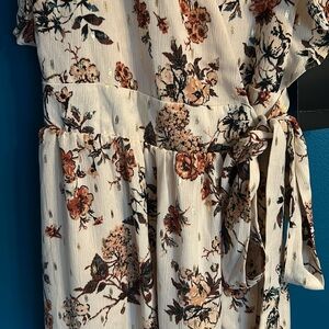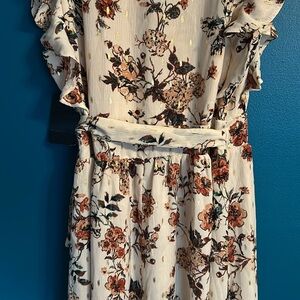 Boston Proper Floral Autumn Metallic Wrap Dress