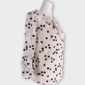 Elevate your style with this elegant Rebecca Taylor blouse. Made from luxurious silk, its delicate floral pattern and ruffle details offer feminine charm.