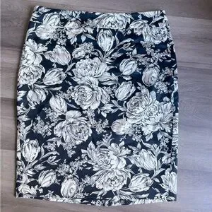 Ann Taylor Floral pencil skirt in white/navy