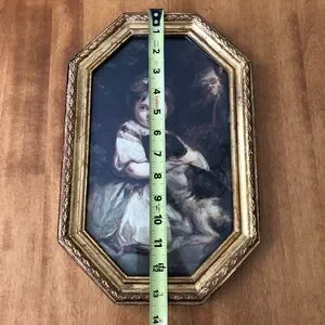 You are purchasing a VINTAGE gold framed print of "Miss Jane Bowles and Her Dog" by Sir Joshua Reynolds, made in Italy.
