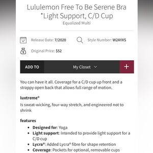 NWOT - Lululemon Set Size 4 Bra and Crop Equalized Multi. Size 4 Free to Be Serene Bra LightSupport C/D Cup Equalized Multi. Size 4 Lululemon Align Crop 21” Equalized Multi. No rips, no stains, no holes. Please let me know if you have any questions or would like additional pictures or measurements. No pet, non-smoke home. Bundles and offers accepted. Happy Shopping 🛍️!