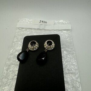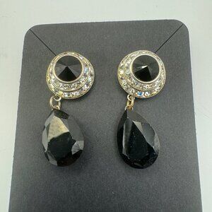 Elegant teardrop earrings featuring black stones and rhinestone accents, suitable for formal and semi-formal occasions.