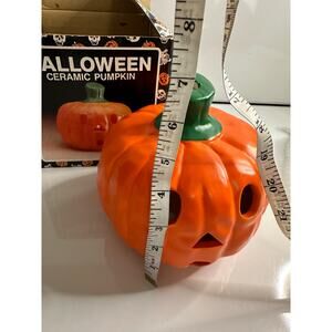 Vintage New Halloween Ceramic Pumpkin Jack O' Lantern smiley candle tealight