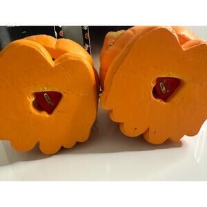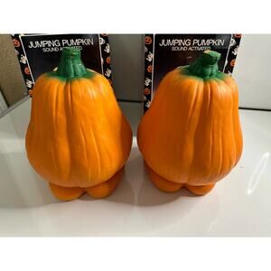 2 new vintage Halloween grumpy pumpkin displays. UNTESTED! Orange decoration