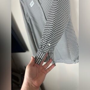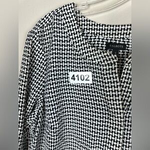 Talbots small black/ white 19-1/2 p2p high low front 27” length back 28” back button cuff long sleeve preowned great condition