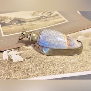Vintage Brass & Shell Perfume Scent Bottle Pendant