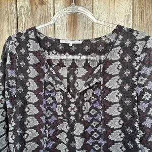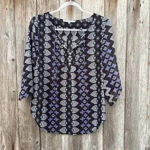 Violet + Claire Sheer Abstract Roll Tab Blouse Medium