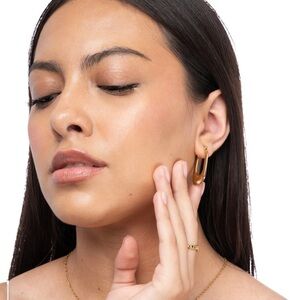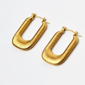 18K Gold Plated Large Hoop Earrings*Rectangular Hoops*Gold Waterproof Jewelry