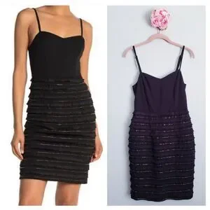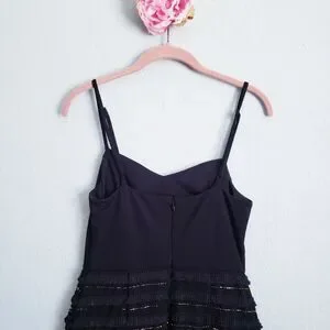 Marina Black Bead and Fringe Gatsby Mini Dress