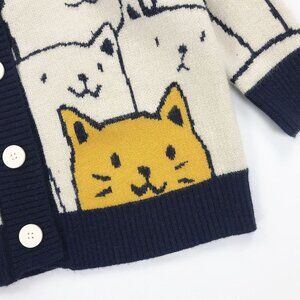Harajuku Kawaii Cartoon V Neck Cardigan Women Retro Fashion Sweater NEW Blue
