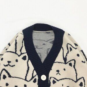 Harajuku Kawaii Cartoon V Neck Cardigan Women Retro Fashion Long Sleeve Knitwear Coat