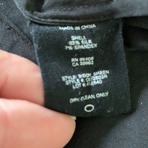 Pure silk. Excellent used condition, no signs of wear. Love this blouse but it doesn’t fit me anymore.