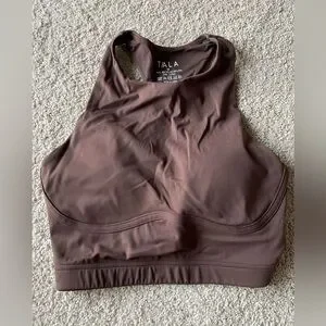 Super flattering fit! Has padding but removable if that’s not your preference. Racerback cut in the back and high neckline. Fits true to size maybe a little tighter on the ribcage
