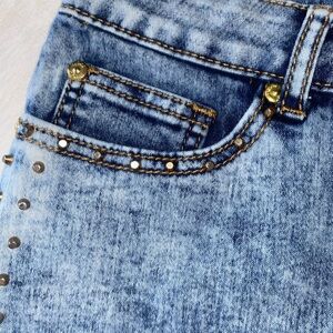 Cute, studded, acid wash, denim, jean shorts, Nicki Minaj, street wear, short shorts, summer, sexy, night out, stretchy, booty short, embellished, destructed, daisy dukes, mid rise, raw hem, cutoff