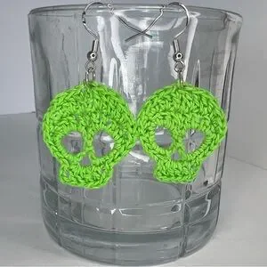 Add a touch of the undead to your outfit with these handmade crochet skull earrings. The intricate design is sure to catch the eye, and the hypoallergenic white gold plated hooks ensure they'll stay comfortable all day long. Whether you're looking for a gift or just want to treat yourself, these earrings are sure to impress.