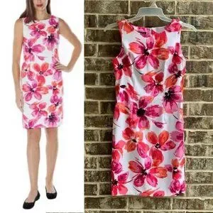 Mario Serrani Italy Women's Stretch Shift Dress Sleeveless Fuchsia Floral 4
