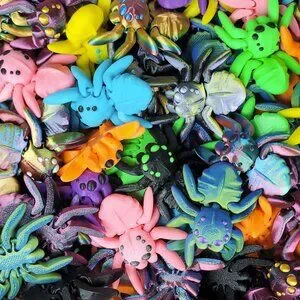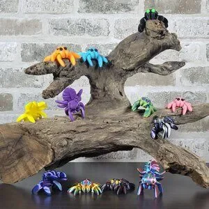 These FUN SIZE Tiny Spiders are fun to play with, look great as a decoration, and are perfect for Halloween! Articulating, posable, spooky, and creepy! 3D printed in high quality, plant-based PLA. Available in a variety of vibrant colors, this listing is for a package of SIX Tiny Spiders in assorted colors.