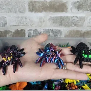 Tiny Spiders are 2.25" in length, and weigh about 10 grams each. Designed by 3D artist Cinderwing3D.