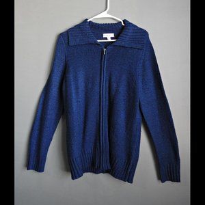 Kim Rogers Blue Knitted Zipper Cardigan Size Large