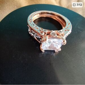 CZ ring. Rose gold and silver toned filigree. Size 8