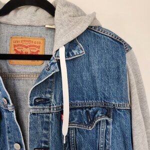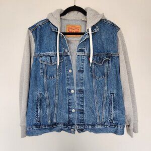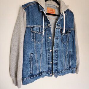 Levis Hybrid Hoodie Trucker Jacket Mens Large L Blue Gray 100% Cotton Denim
