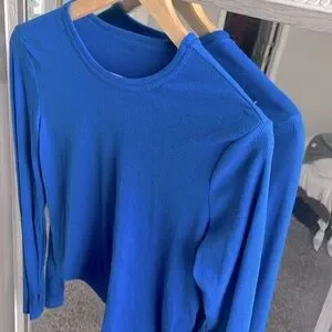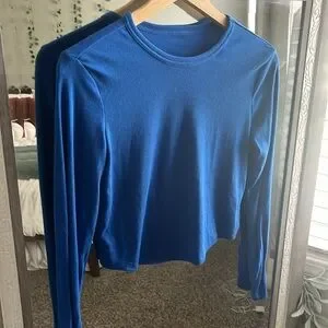 Basic blue ribbed long sleeve crop top