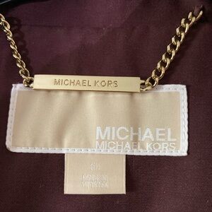 NWT! Michael Kors trench coat/rain coat, size 0X. Beautiful rich merlot color with stunning gold zippers & hardware. Lining is also Merlot color. Nice adjustable hood with toggles. Spacious pockets.