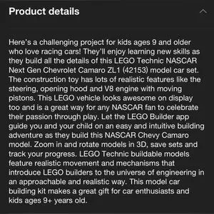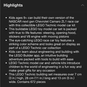 LEGO Technic NASCAR Next Gen Chevrolet Camaro ZL1 NWT