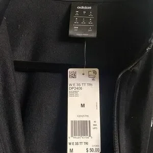 NWT: adidas 3 strip track sweater Zipper Warm inside Pet/smoke free