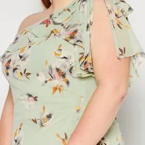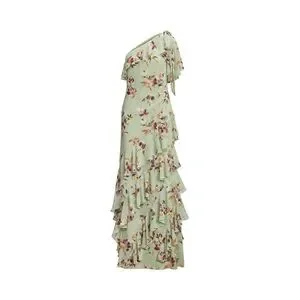 Defined by a one-shoulder silhouette with a playful bow and the season's feminine floral print, Lauren Ralph Lauren's floor-sweeping gown is cut from crinkled georgette with a tiered ruffled skirt for graceful movement with each step.