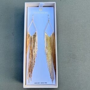 NEW House of Harlow 1960 Long Fringe Dangle Earrings Gold with box NIB