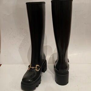 Brand New , with original box . 100% Authentic Gucci tall rain boots. Made in Italy size: 38 . Run smaller. Black and gold color.
