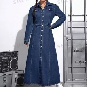New SHEIN EZwear Flap Detail Button Front Denim Dress Size L