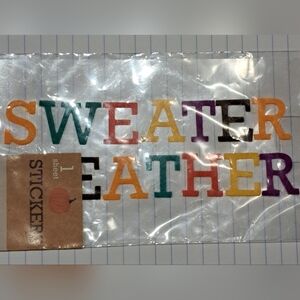 FREE WITH ANY PURCHASE, ONE FREE ITEM PER BUNDLE PLEASE. 1 sheet of stickers that spells sweater weather. Length is 6.25 inches. NWT