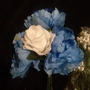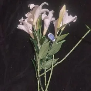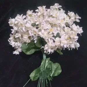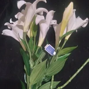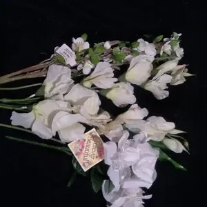 3 Easter lilies of 3 in white, baby's breath, 2 bundles of misc. blues, purples, black and white flowers. 1 bunch of mini weeping white flowers, a blossom bush and other white flower bundles. Some still have tags on them.
