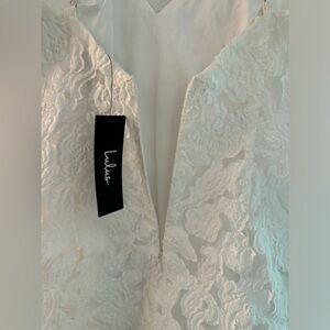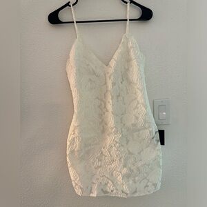 LULU’S Moonlight Moments White Floral Jacquard Backless Mini Dress NWT