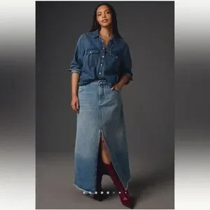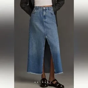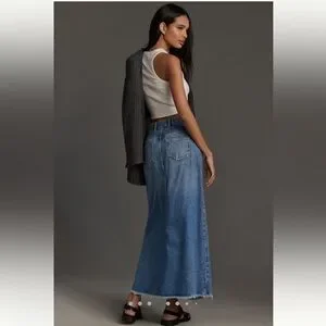 Pilcro from Anthropologie, Madi front-slit denim skirt, Endless summer wash, 4