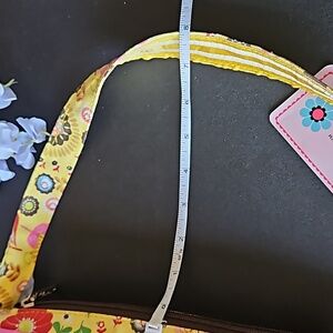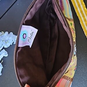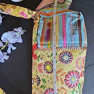 Sun & Sand Chester Hand Bag with Wooden Flower Hang Tag and sequins with various patterns. Blue and yellow floral design makes this a fun bag! NWT