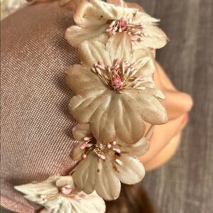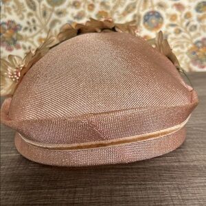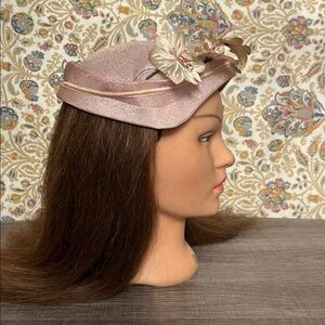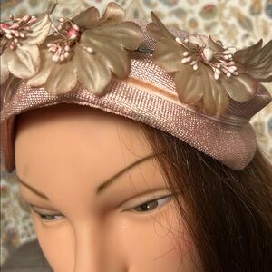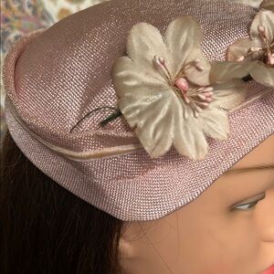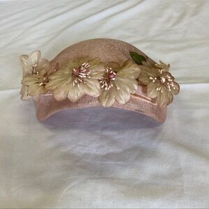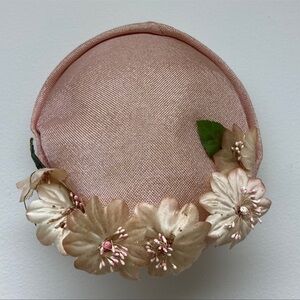 Vintage Hat Pink and Cream Flowers Fascinator Church