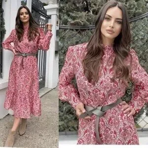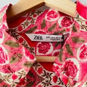 New Zara Linen Floral Button Down Size Medium Midi Dress