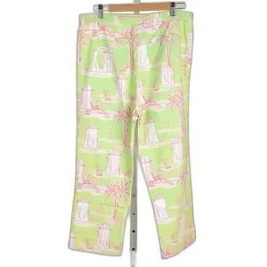 VTG Lilly Pulitzer Cabana Banana Green/Pink Cropped Elastic Waist Pant Size M