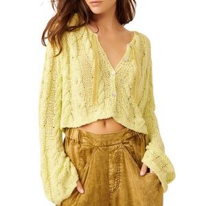 FREE PEOPLE ROBYN SHORT CABLE KNIT CARDIGAN LARGE AND XL LIME CREAM