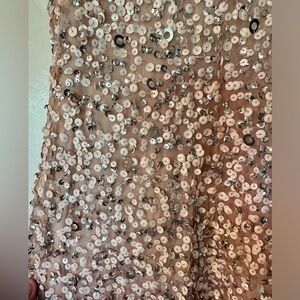 Blush colored long dress. Bust 40.5” , waist 33.5” , hips 43.5”. Worn once for a couple hours, still like new.