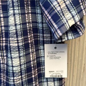 Pretty navy, white, pink plaid duster from Kohl’s! Zipper closure, 2 large front pockets, cotton/poly blend, machine wash/dry. Inverted back pleat makes it extra roomy! Brand new!
