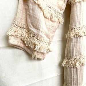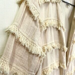 HARLYN by Anthro Boho Duster Jacket Cream Size M Bohemian Festival Lace Fringe