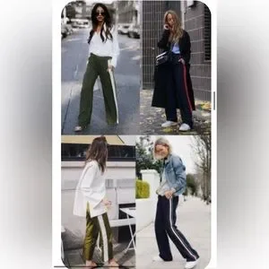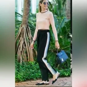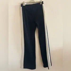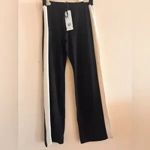 NWT $ 370.00 Escada Sport Track Side Stripe Loose Fit Pants. Size: L . Swarovski crystals logo . A -waist 15,85”+15,85” , B 11” , C - length 42” , D 33,5” , E 10,5” . Black color , white and gray stripe .68 % merino wool 17% polyamide 12% polyester 3% elastane.