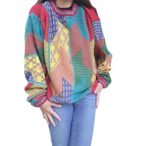 Vintage 1990s Domenic Sacco Sweater XL Multicolor Coogi Style Art Kistchy
