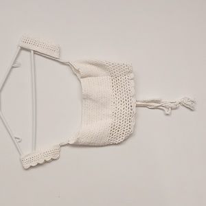 White Off Shoulder Hand Crochet Lace Up Summer Crop Top and Shorts Matching Set