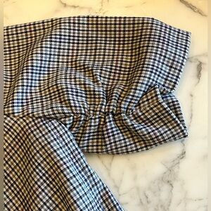EUC KAREN KANE Ruched Sleeve Houndstooth Plaid Blazer W/ Stretch M Cream/Multi