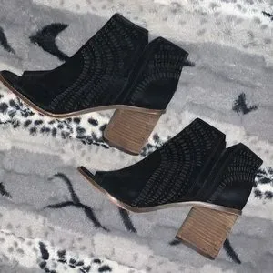 Vince Camuto Suede Open Toe Ankle Boots — 9